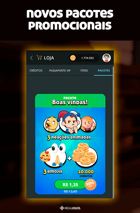 Temos combos para todos os bolsos que reúnem reações animadas + emojis + créditos de jogo.