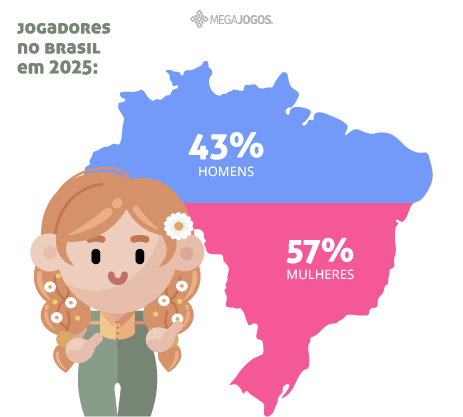 De acordo com relatório de 2025 da ESA (Entertainment Software Association), no Brasil, as mulheres representam mais da metade dos jogadores, com 57% contra 43% do público masculino.
