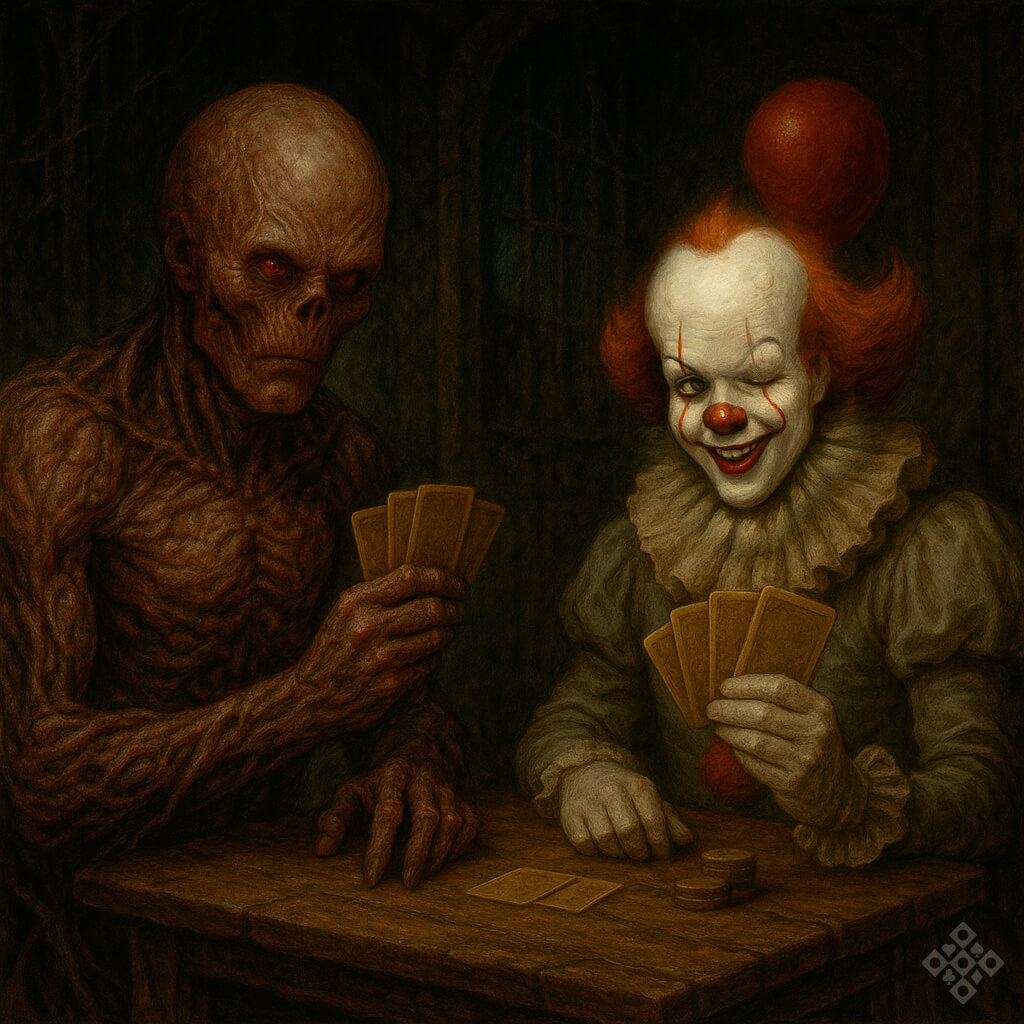 Imagina enfrentar o Vecna numa partida de truco ou o Pennywise em uma mesa de poker. Blefes iam ser o menor dos seus problemas.